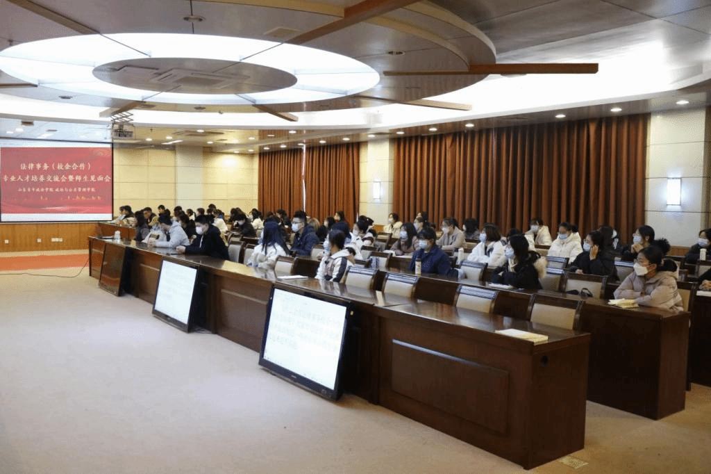 为帮助2021级法律事务专业(速录师方向)学生了解所学专业的行业企业情况,做好学业和职业规划。近日,政治与公共管理学院在图书馆学术会议厅举行法律事务专业(速录师方向)师生见面会。山东亚速信息技术有限公司总经理张福、教育培训部总监陈璐、司法服务部总监赵峰,政治与公共管理学院党委副书记王正坤、副院长卢鹏程,法学教研室教师及2021级法律事务专业(速录师方向)全体同学参加会议,会议由副院长梁艳主持。