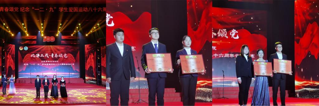 风华正茂,青春颂党。12月9日晚,由共青团山东青年政治学院委员会,山东青年政治学院学生会主办的“一二·九”学生爱国运动八十六周年合唱比赛在山青剧院如期举行。本次比赛中,政治与公共管理学院合唱团用歌声讴歌壮丽新时代,在歌声中感悟党的奋斗历程和伟大精神,深情演唱了《迎风飘扬的旗》《我爱你中国》两首歌曲,取得了一等奖、网络人气奖、最佳指挥奖三项突破!