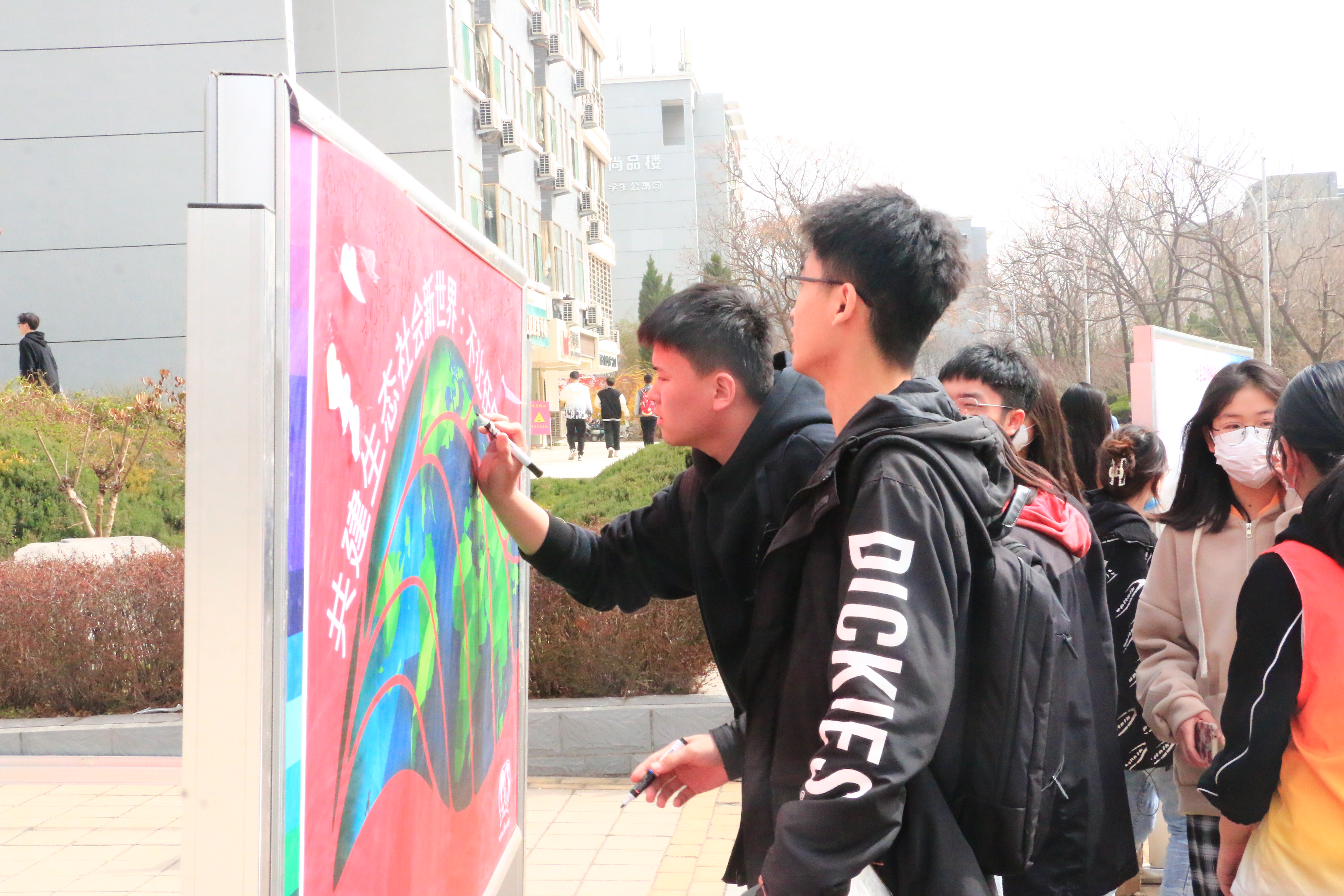 活动现场,志愿者们运用宣传展板、社工小剧场、打卡合影、暖心寄语等方式,吸引了同学们的广泛关注。社团在学校南北苑广场摆摊设点,通过扫描二维码进行社工专题问答,丰富有趣的问题带领大家慢慢走近社工,认识社工。志愿者们引导大家围绕本次国际社工日的主题——“共建生态社会新世界”一同发现校园中的环境问题和不文明行为,并结合环境社会工作理论做了专业解答,一问一答中,社会工作的专业知识悄然影响了每一位参与活动的同学。在“社工小剧场”活动中,志愿者和同学们一起观看了全国社工微电影大赛优秀作品,社会工作者的信念坚守、倾听包容、无私奉献深深感动着现场的同学们。活动现场,志愿者引导同学们在便签纸上留下自己对社工的祝福与寄语,一句句鼓励、一张张卡片温暖了每一位社会工作专业同学,也更加坚定了他们对社会工作专业的认同感与归属感。活动结束后,同学们在展板幕布前拍照留念,共同庆祝属于社会工作者的节日。