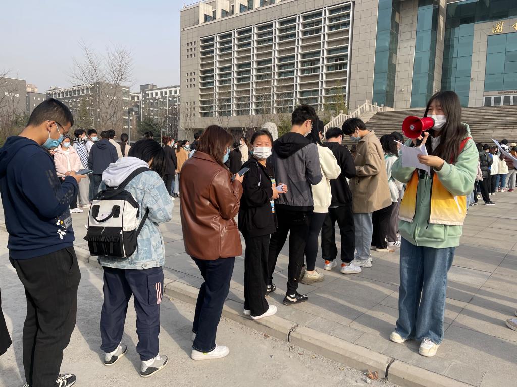 在核酸检测现场,志愿者们在做好个人防护的前提下,熟练掌握核酸检测的流程,协助学院、校医院、后勤处为参与检测的同学提供咨询,引导学生秩序出入,保证了核酸抽检工作井然有序、顺利进行,为开展疫情防控工作积累了经验。志愿者鞠泽栋谈到:“作为青年大学生的使命感、责任感、紧迫感,让我毫不犹豫地加入到志愿者队伍为疫情防控贡献自己的微薄之力,只要我们团结一心定能快速打赢这场疫情‘阻击战’!”