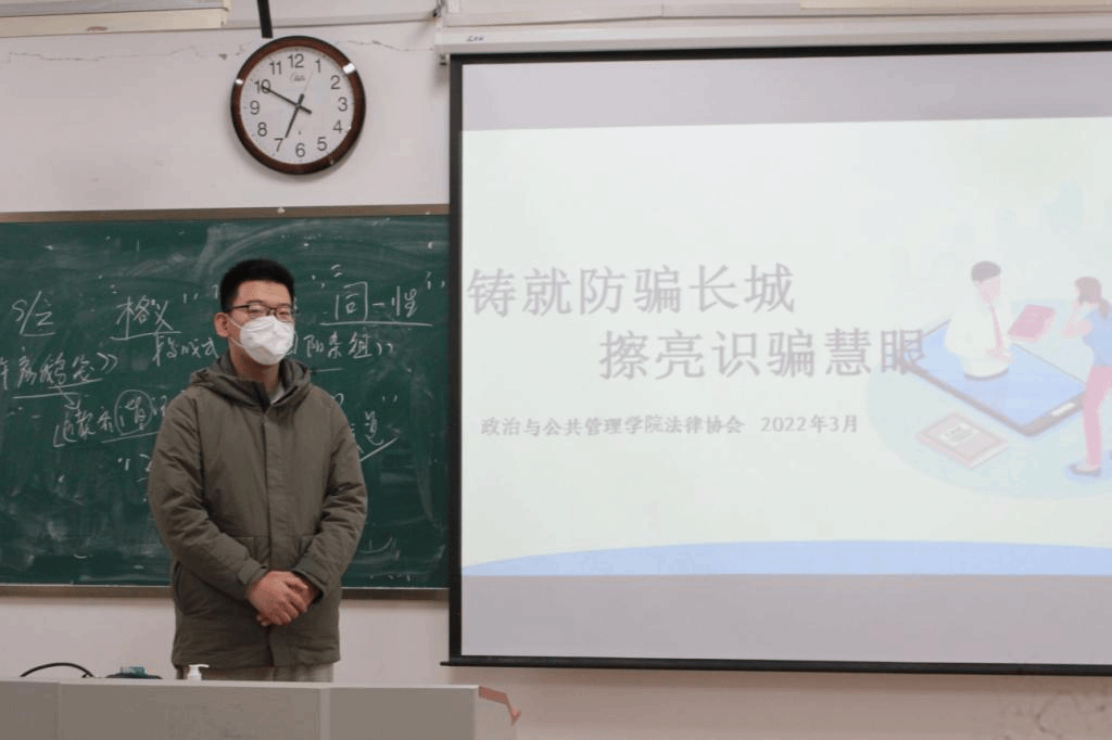 为进一步提升防范电信网络诈骗宣传力度,增强大学生防骗、识骗、拒骗能力,3月17日晚,政治与公共管理学院法律协会开展以“青春不欺、校园无诈”为主题的反诈骗宣讲活动。