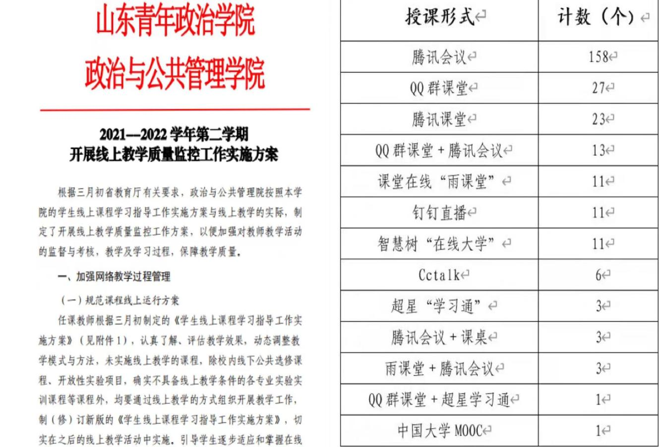 结合前期疫情防控需要,3月初,学院要求授课教师制定并完善线上教学预案,对可能开展的线上教学期间的课堂教学、毕业实习、毕业论文、考试安排等进行了详细安排。按照预案,教科办前期与有关部门单位协力推进,指导并帮助教师选择线上教学平台、调试设备,统计备案教师线上授课平台。为确保教育教学进度和质量,3月中旬学院还制定了《开展线上教学质量监控工作实施方案》。前期充足的线上教学准备,保障了全面启动线上教学紧急通知的有序应对。