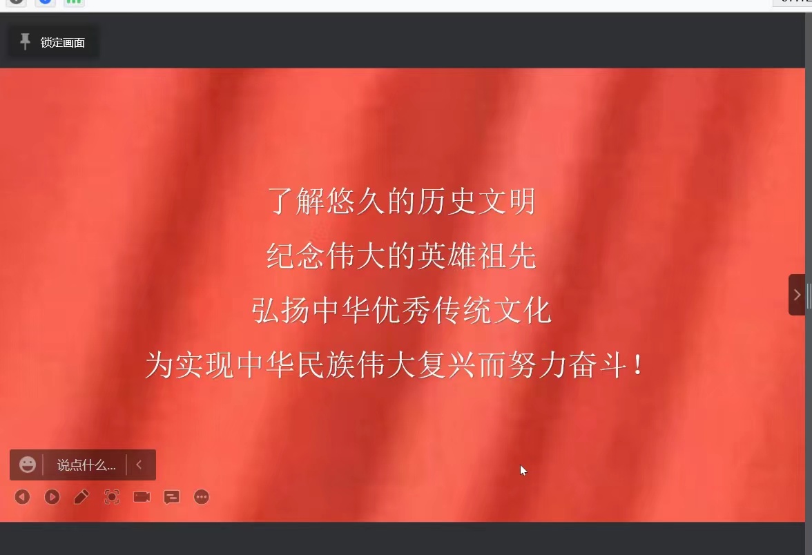跟随宣讲人的脚步,同学们首先在线上走进了济南的舜文化景观,游览了千佛山,了解了“舜井锁蛟,铁树开花”的历史故事;随后,宣讲人又向大家生动形象地讲述了大舜的传奇一生;接着,宣讲人分别从“民族起源”、“中华文化”、“历史发展”三个角度讲解了舜的历史定位,并阐述了舜文化是以“孝仁和”为实质的文化,与我们每个人息息相关;最后,宣讲人引入了“被遗忘的历史”“伟大的治水”和“虞朝十大臣”三大板块,引导同学们应当了解与我们关系紧密的舜与舜文化,学习大舜“百折不挠,无私奉献”的伟大精神。宣讲活动从“舜城济南”“舜的传奇一生”“舜的历史定位”“舜文化概述”等七个模块,全方位介绍了舜文化,生动形象地向大家展示了大舜一生的传奇故事,为传统美韵协会的各位同学带来了一场传统文化的盛宴,同学们也为以舜帝为代表的中华先民不畏艰险的精神品质所震撼。