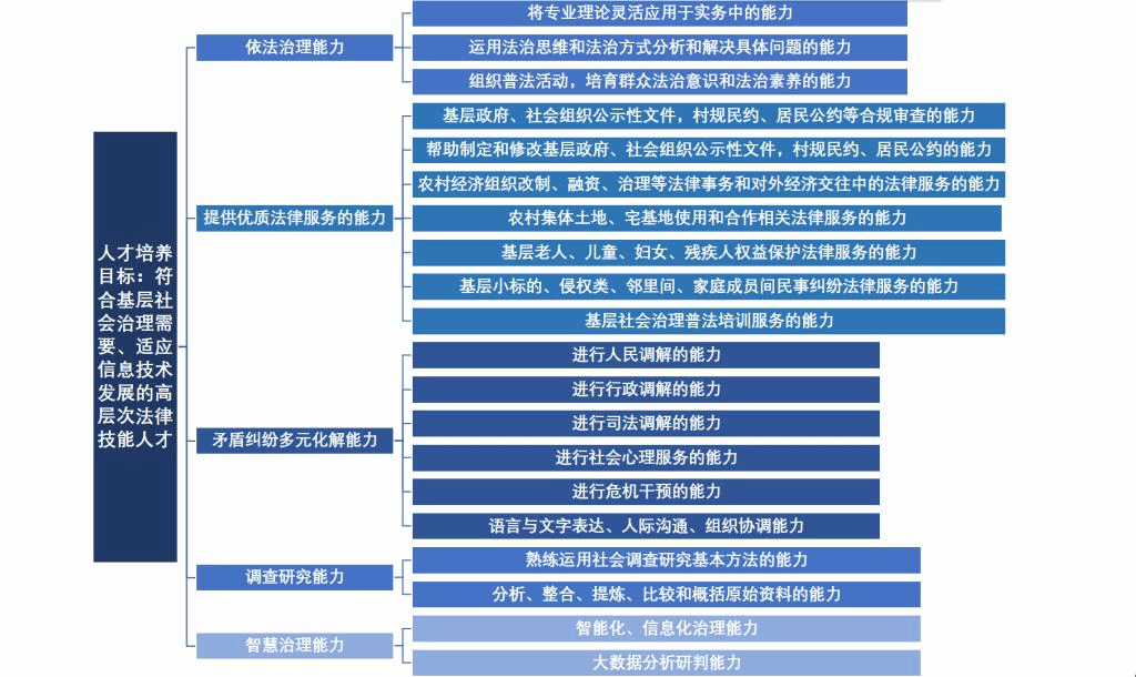 研讨会开始,两个职教本科专业分别汇报了对职业岗位能力需求的分解以及对课程体系建设的思考。党务工作专业围绕党务工作、党的建设与党的工作等不同面向,提出基础能力、进阶能力与高级能力三个层面的能力需求分析框架。法律专业对比分析法律职教本科与法学普通本科对实践能力的不同要求,聚焦基层社会治理需要提出能力分解框架,并以矩阵图的形式展示了职业岗位能力要求和课程的对应关系。