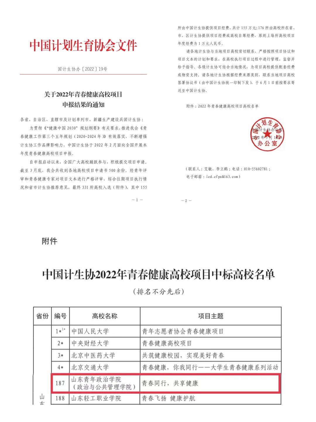 近日,中国计划生育协会发布《关于2022年青春健康高校项目申报结果的通知》(国计生协〔2022〕19号),我校政治与公共管理学院晨之曦社工协会“青春同行,共享健康”青春健康项目在500余个项目中脱颖而出,成功入选2022年青春健康项目,并获批项目资金1万元,这也是晨之曦社工协会连续四年成功入选该项目。
