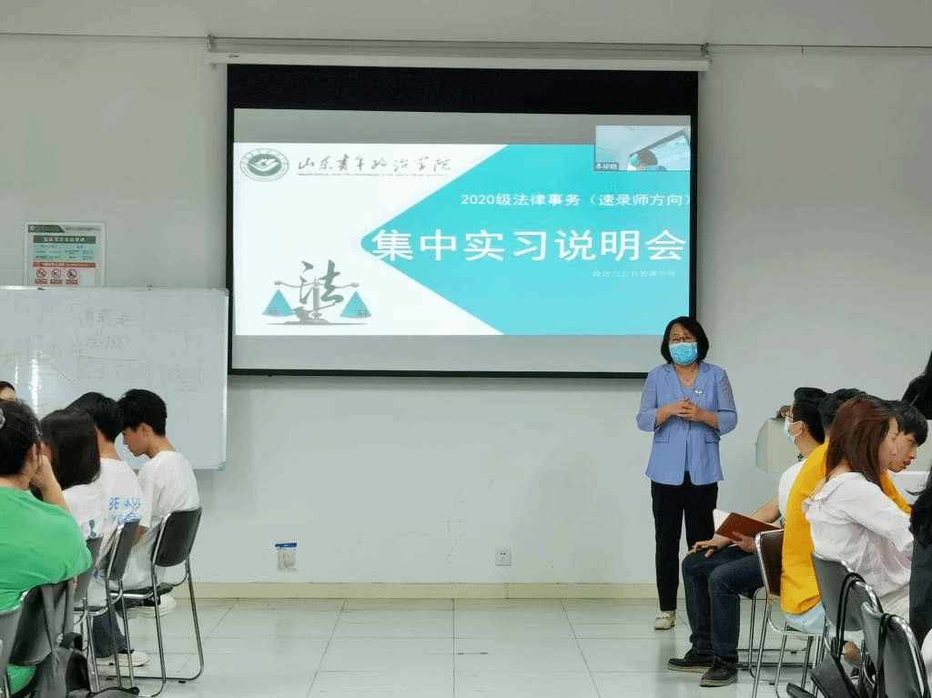 为了切实做好校企合作专业实习工作、保障人才培养质量、强化产教融合专业特色,近日,政治与公共管理学院通过线上与线下相结合的方式,召开2020级法律事务专业(速录师方向)集中实习说明会,合作企业山东亚速信息技术有限公司总经理张福、教育培训部总监陈璐、政治与公共管理学院副院长梁艳、法学教研室部分教师及校企合作专业全体同学参加。