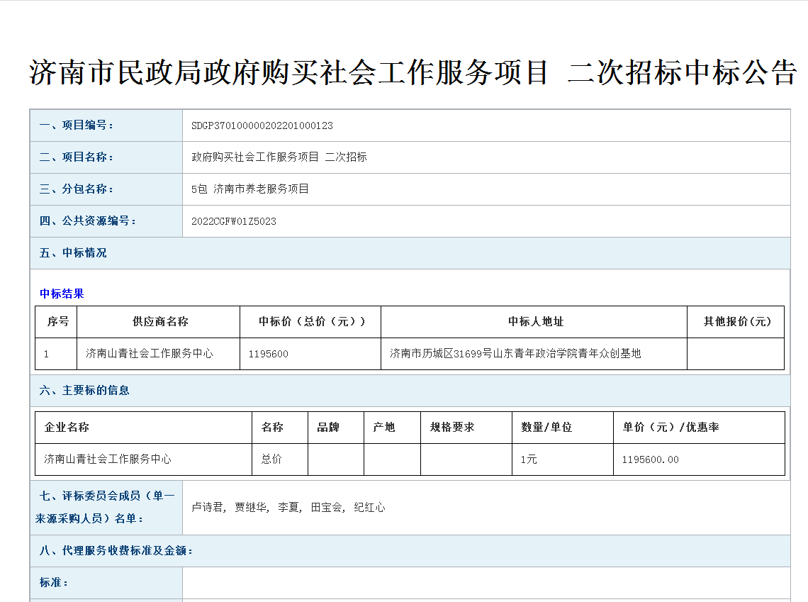 近日,济南山青社会工作服务中心在济南市民政局政府购买服务中成功中标“济南市养老服务项目”项目包,中标总金额为360万元,服务时间为三年。本次中标的养老服务项目既包括调适机构养老中老年人生活环境的直接服务,也包括“五社联动”视角下助推济南养老服务发展、提升济南养老服务品牌的政策倡导服务,是机构成功承接历下区3个街道社工站建设运营、历城区7个街道社工站建设运营后在民政服务领域的又一次探索尝试和服务拓展,充分体现了我院在社会工作专业教育、社会工作理论研究、应用型人才培养、专业社会服务输出等方面的综合实力,为拓展机构养老服务新面向,推动学院“一强化两拓展”战略落实落地、深化学校“政校社”协同发展模式提供了新平台、搭建了新平台、指明了新方向。