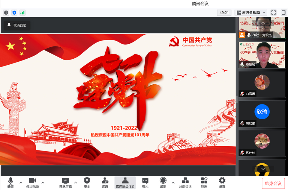 为庆祝中国共产党成立101周年,迎接党的二十大胜利召开,政治与公共管理学院学生第二党支部开展了“忆党史守初心”特别主题党日活动,支部全体党员参加,会议由支部书记于晓光主持。