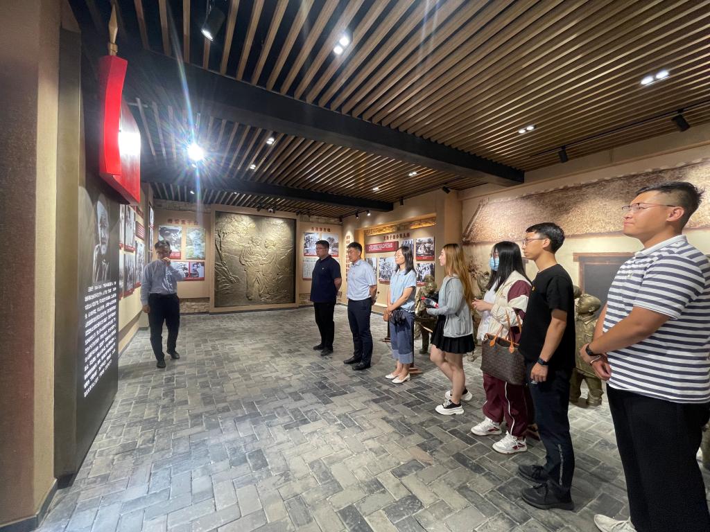 跟随着讲解员的解说,大家通过观摩、聆听纪念馆内两千余张图片、五百余件实物、百余件实景雕塑和每一个感人故事,仿佛当年的光辉历史和催人泪下的军民情结又重新再现。最后,伴随着《跟着共产党走》的音乐,全体人员齐声歌唱,共同体会着人民群众当年跟着共产党向前走的决心和信心。