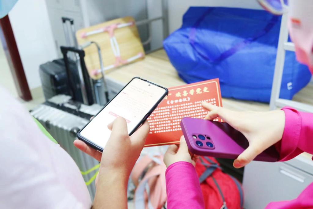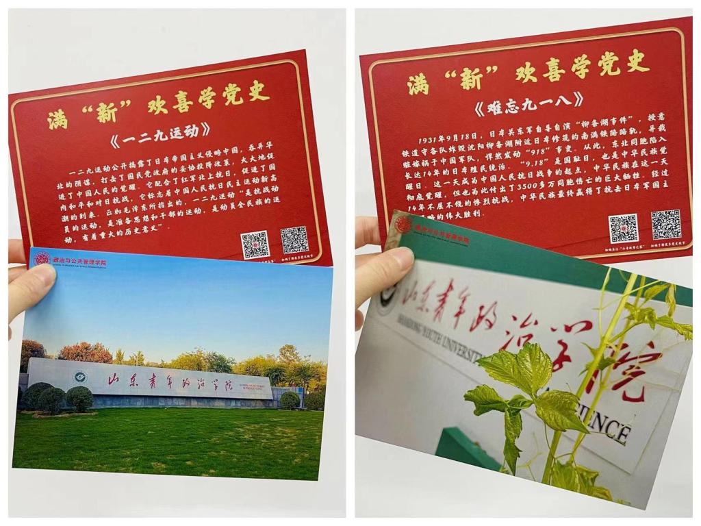 为开展好新生入党启蒙教育,教育引导学生做到明理增信、学史力行,学院将党史学习教育与新生入学报到相结合,精心设计满“新”欢喜学党史环节,将印有校园风景明信片的背面设计成党史小故事,学生通过扫描二维码即可观看党史故事完整视频,视频均为学院2021年党史学习教育“峥嵘百年正风华”系列活动中学生党员录制的“党史故事100讲”,纪念卡放置于新生床铺上,新生来到宿舍后就能扫码学习,让新生报到当天既能欣赏校园美景,了解学院既往活动开展情况,又能学习百年党史,在党的二十大召开之际激发学生的学习热情。