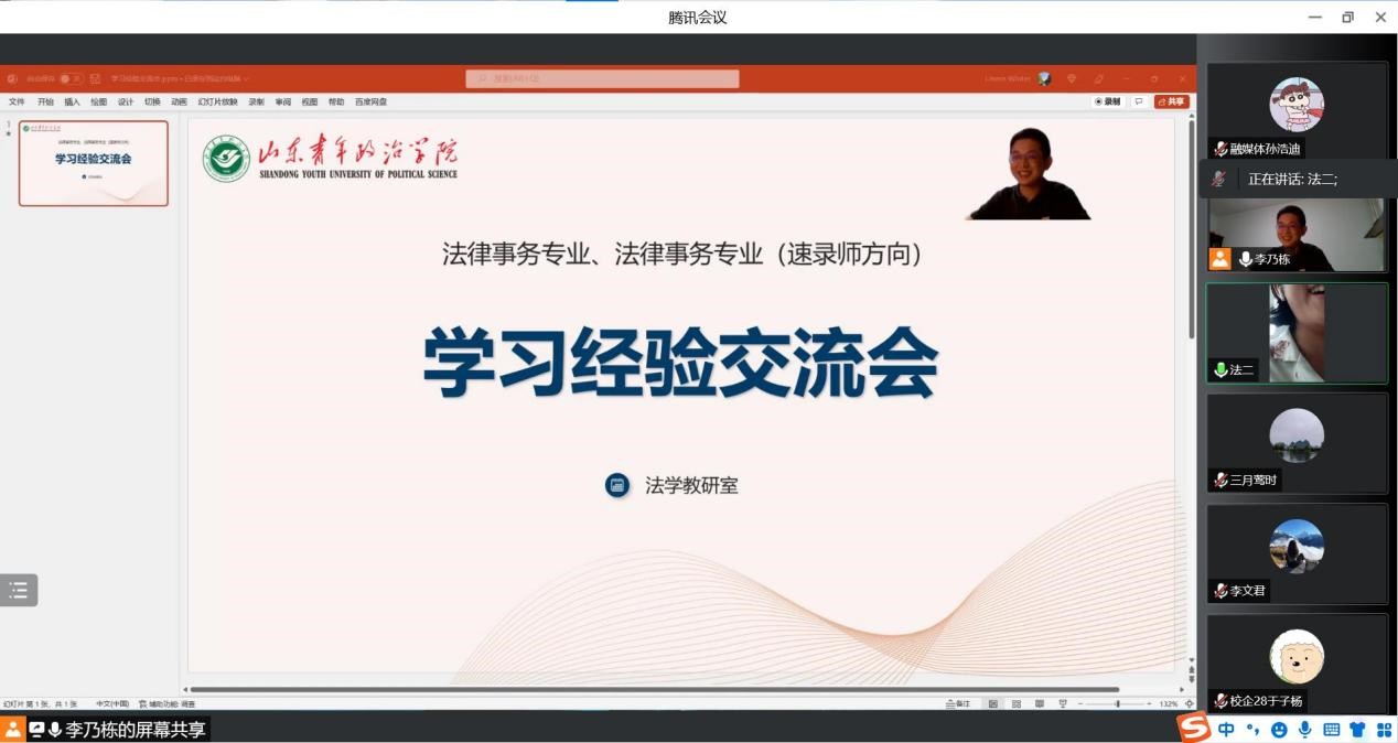 为促进法律事务专业、法律事务专业(速录师方向)学生升学和高质量就业,发挥优秀学长、学姐“传帮带”作用,9月4日晚,政治与公共管理学院法学教研室在腾讯会议组织开展了线上“专升本学习经验交流会”。会议邀请了2019级法律事务专业专升本成功“上岸”的学生郝袁静、徐惠敏、赵淑轶、吴博辉四位同学进行经验分享。会议由法学教研室主任李乃栋主持,教研室部分老师、2020级和2021级法律事务专业学生参加。