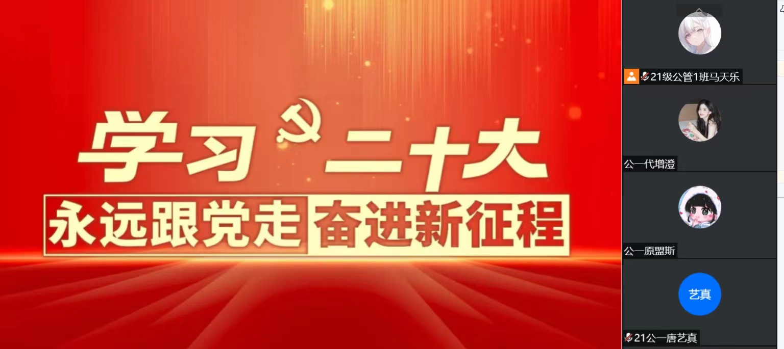 青春逢盛会,奋斗正当时。10月16日上午,中国共产党第二十次全国代表大会在人民大会堂隆重开幕。习近平总书记代表第十九届中央委员会向大会作报告。为深入学习好、深刻领会好、全面贯彻好党的二十大精神,让听党话、跟党走的信念成为青年学生的自觉追求,用中国特色社会主义思想武装头脑、指导实践,政治与公共管理学院组织各团支部开展“不忘初心跟党走、青春建功新时代”主题团日活动,活动通过线上线下相结合的方式观看了开幕会盛况,认真聆听学习了党的二十大报告。
