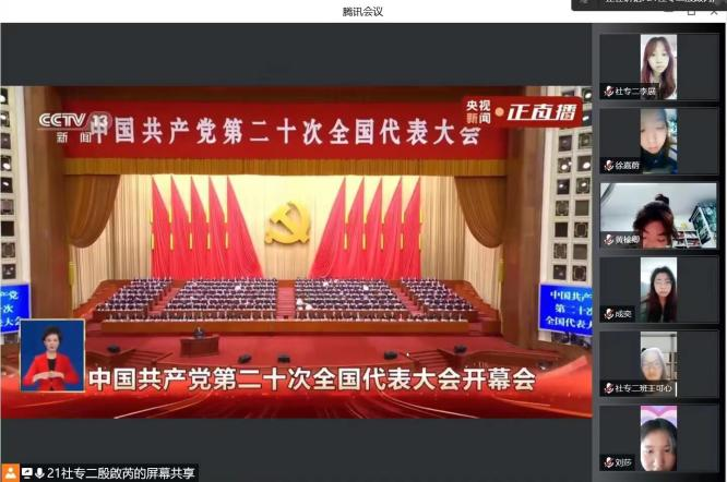 2020级社会工作专业夏成城分享到,“通过观看中国共产党第二十次全国代表大会,我更加深刻感悟到了中国共产党的初心使命与责任担当,作为学生骨干,我们应该学习革命前辈们不怕牺牲、排除万难的革命意志,学习党的光辉历程中所坚持的锐意进取、改革创新的工作方法,在今后的工作中,坚守初心、敢于创新、奋勇拼搏,做好老师的协助者、同学的服务者,在学生权益维护、生活服务、心理疏导以及丰富学生精神文化生活等工作上再接再厉,发挥好学生骨干的模范带头作用,不负青春、不负韶华,以实际行动和优异成绩实现自己的青春价值!”
