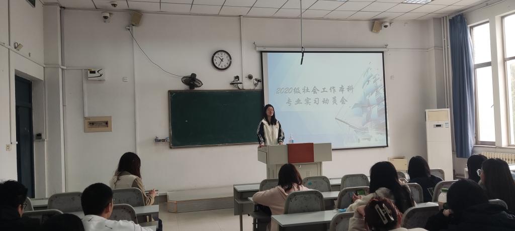 为扎实做好2020级社会工作本科专业实习工作,进一步促进学生对所学知识和技能的总结深化和实践运用,引导学生明确实习的目的和意义。10月30日上午,社会工作专业教研室在笃行楼103室组织召开了2020级社会工作本科专业实习动员大会,2020级社会工作专业全体学生参与,专业教研室主任王俊燕、实习负责老师宋婷出席活动。