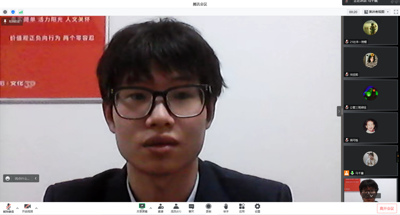 马千惠在总结中鼓励同学们明确自身想法,做好规划,拓宽视野,不断提高自身全面素养,在完成学业的同时提高自身就业竞争力,同时要提高人际交往和环境适应能力,大胆尝试、放手拼搏,为走出校园、踏入社会做好准备。