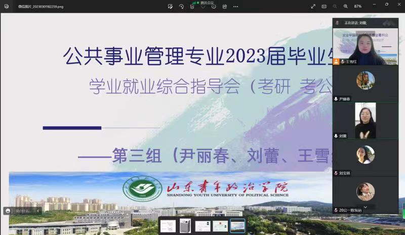 在第三组指导会上,王雪红老师和刘蕾老师分别结合自身的考研经历,为考研学生调剂的心理建设以及调剂技巧提供了针对性的十条建议,并引导考研失利学生,正确看待挫折失败,鼓励同学们调整好心态,转换赛道,争取在考公及其他行业领域找到实现自我的工作平台。最后,尹丽春老师立足当下就业压力和未来经济社会发展趋势,为学生择业提供了更为宏观的视野和参考。
