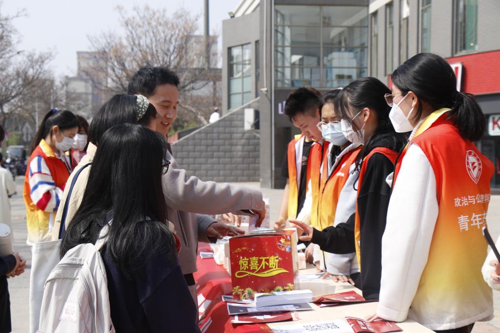 意义非凡的校外实践。3月21日,在大观园街道纬五路社区的支持下,晨之曦社工协会的志愿者们来到融汇济南老商埠的市中区新时代文明实践广场,举办了形式新颖的各类宣传体验活动。志愿者们通过发放宣传手册、张贴海报宣传社会工作专业知识,设立外卖小哥休息驿站,借用人体模型科普心肺复苏急救知识,让居民以互动体验的方式学习糖画、脸谱等传统技艺。志愿者们积极了解居民需求,耐心细致地解答居民提出的各种问题,通过活动拉近了与社区居民的距离,运用社会工作专业知识和技巧与社区居民进行友好互动,为社区居民进一步加深对社会工作的了解建立起了信任平台,此次活动效果良好,得到济南市电视台《有么说么》栏目组的采访与报道。