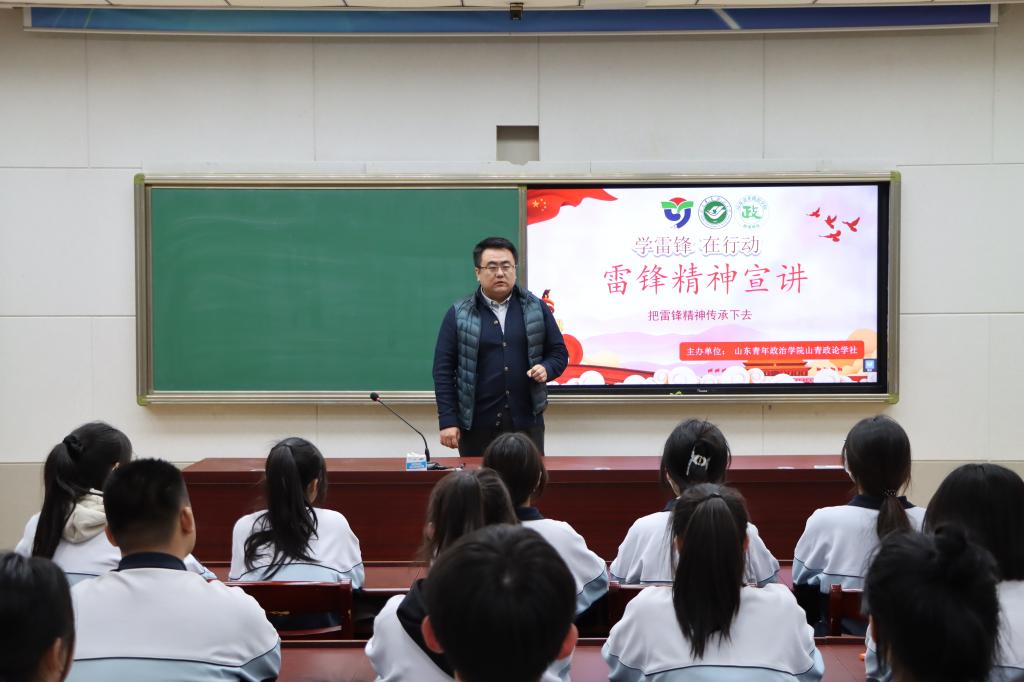 三月春暖花开季,学习雷锋正当时。为进一步推进“我们这样学雷锋”系列活动走深走实,引领青年自觉践行雷锋精神,3月23日,政治与公共管理学院山青政论学社在济南市第九中学组织开展把雷锋精神代代传承下去——雷锋精神主题宣讲活动。山青政论学社宣讲团成员刘梦洁、董鸿铭、方帅均、刘萌宇和济南市第九中学部分团员参加活动。