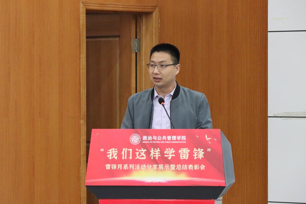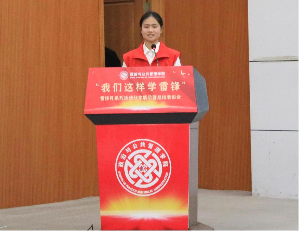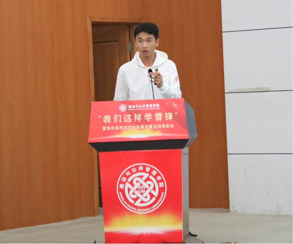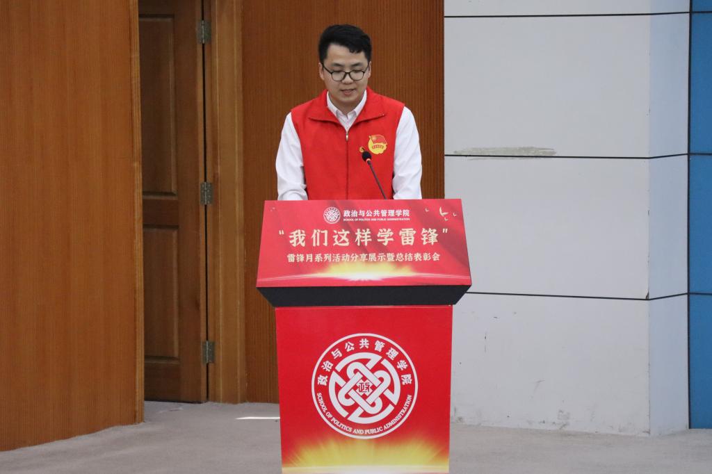 孟祥佳对学院雷锋月系列活动成果给予充分肯定。他表示,政治与公共管理学院历来重视价值引领、致知于行,形成了具有鲜明政管特色的志愿服务“一二三四”工作体系和系统化常态化长效化的工作机制。他援引雷锋日记的相关内容,深刻阐释了雷锋精神的时代内涵,希望同学们正确看待和处理集体与个人、大我与小我、利他与利己的关系,把学习雷锋精神“融入日常、化作经常”,在帮助他人、奉献社会中实现人生价值。