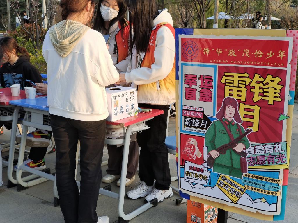 为深入贯彻习近平总书记对深入开展学雷锋活动作出的重要指示精神,近日,政治与公共管理学院公共管理协会联合学生第六党支部举办了“锋”华“政”茂·恰少年志愿盲盒活动。
