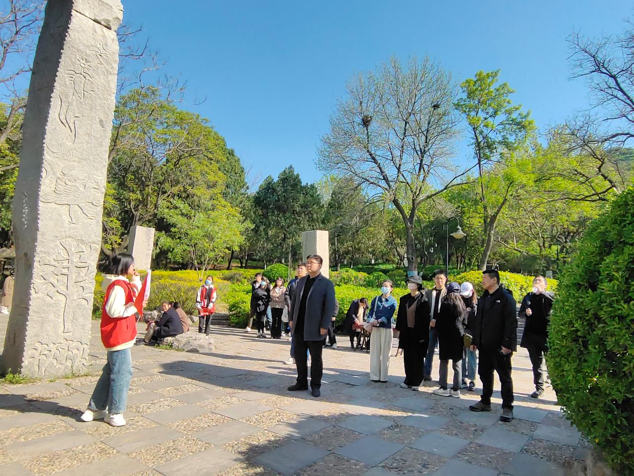为进一步坚定文化自信,提升青年教师文化底蕴和理论素养,4月7日,我校政治与公共管理学院在千佛山开展了舜文化研学活动暨第22期辅导员能力提升沙龙,政治与公共管理学院党委副书记王正坤,学生工作部(处)、政治与公共管理学院、设计艺术学院、文化传播学院、信息工程学院、舞蹈学院、体育部等学院的辅导员代表及思政课教师代表等30余人参加了本次活动,研学活动由大舜文化志愿宣讲团的5名学生志愿者主讲。