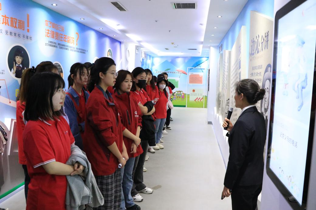 “努力让人民群众在每一个司法案件中感受到公平正义。”学员们首先参观了省高院青少年法治教育中心,这是全国高院系统第一家青少年法治教育基地,先后被授予“山东省青少年法治教育示范基地”“山东省关心下一代法治教育示范基地”称号。罗莹用风趣严谨的语言娓娓道来,先后从法的基本概念、与其他社会规范的关系等方面展开叙述,逐一讲解了大学生群体常犯的帮信罪等罪名,带领大家沿着法治长廊感受古今中外的法治发展。学员们在法治长廊前纷纷驻足学习,在法治故事区、毒品展览区、智能设备区深入了解了当前司法环境的最新动态,提高了知法、懂法、守法的意识与能力。