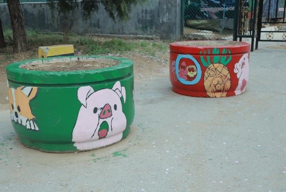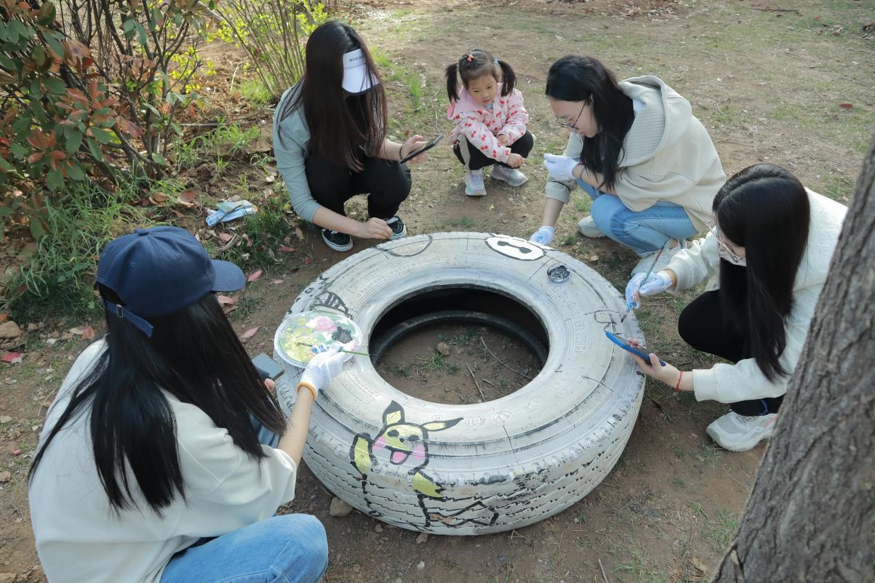 活动前期,公共管理协会在学院范围内广泛征集手绘志愿者,与绿化环卫所沟通,搜集轮胎涂鸦的相关资料,确定绘画主题与内容,利用绿化环卫所提供的工具在公园内的轮胎和垃圾桶上进行美术创作。志愿者们将需求作为导向,把责任见于行动,用手中的画笔或描绘色彩斑斓的风景,或增添垃圾分类的相关知识,将一件件废弃物品绘制成为环保艺术品,吸引众多市民观赏并引发思考。