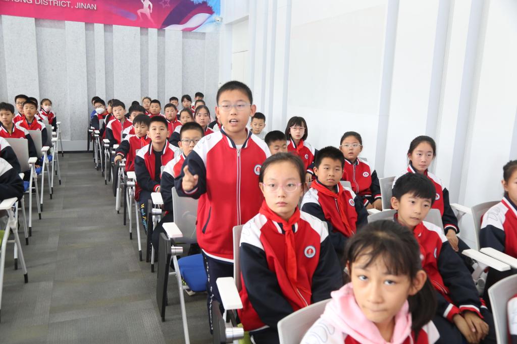宣讲团志愿者从济南的别称“舜城”引入,带同学们认识了济南古代的双子城结构,介绍了舜井、舜祠、北渚桥等众多济南名胜历史故事,让同学们知晓其与舜文化的历史渊源;志愿者通过讲述舜的传奇一生,让同学们知道了舜善事父母、仁爱待人,忠心尽献地对待国家和民族。同学们为大舜的德行与能力所震撼,也为大舜“孝”“仁”“和”的美好品质所深深感染。在宣讲过程中,同学们踊跃回答,现场互动不断,纷纷表示:“我以后要向大舜学习,成为一个有道德有才能的人!回家后,我还要把大舜的故事讲给爸爸妈妈听……”本次宣讲使同学们了解了舜城济南这一历史文化名片,为传承发展中华优秀传统文化固本培元、立根铸魂凝聚了思想力量。
