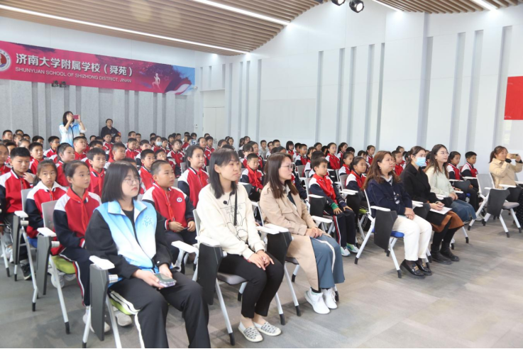 为更好地传承中华优秀传统文化,使青少年更加了解舜城济南,自觉接受中华优秀传统文化熏陶,增强文化自信,4月17日下午,山东青年政治学院大舜文化志愿宣讲团走进济南大学附属学校(舜苑)小学部,面向800余名学生展开了生动有趣的舜文化宣讲活动,活动以线下会场讲解、线上直播转播的形式进行。