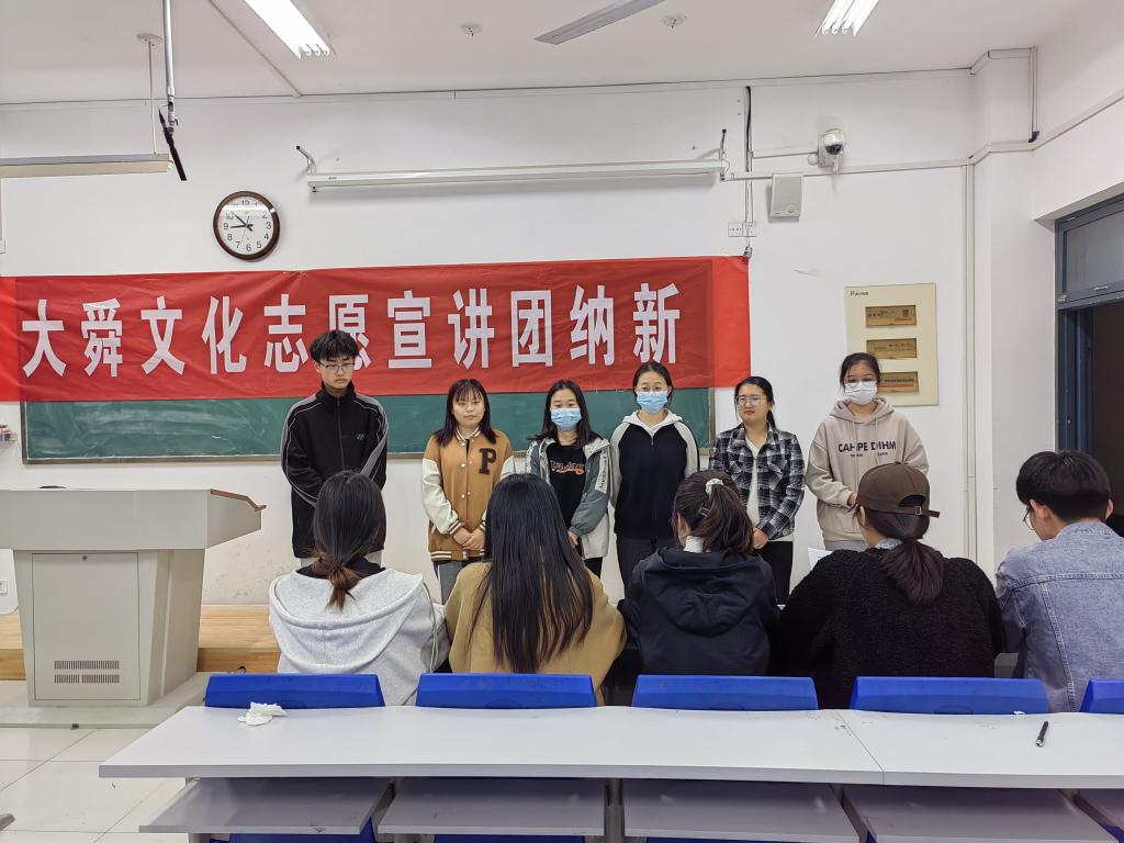 大舜文化志愿宣讲团于4月1日至11日开展了纳新工作。此次纳新中,各学院积极发动,学生踊跃报名,共收到报名表138份,经过学院初选、推举、面试等环节,宣讲团终选共纳入116人,其中2022级学生86人、2021级学生30人,此次纳新壮大了舜文化宣讲团队伍,为宣讲团增添了新鲜血液。