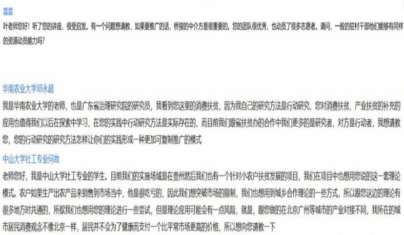 王玉香院长总结强调,叶教授从乡村振兴出发,围绕巢状市场的实验不断探索,充分考虑小农户优势,结合消费者需求,通过搭建市场创造了稳定、可持续的农产品销售渠道。叶教授的实践强调了社会建设与信任建设,在反思改进中坚持理论创新、思想创新、实践创新,从而实现了双方利益的最大化,是一次意义重大的行动研究,也是一种可复制、可推广的扶贫新模式。王院长鼓励每位师生在社会研究过程中向叶教授学习,明确角色定位,突破思维范式,加强行动研究,努力担当作为,做到有行动、有思考、有创新,力争在国家建设发展中担当好责任使命。