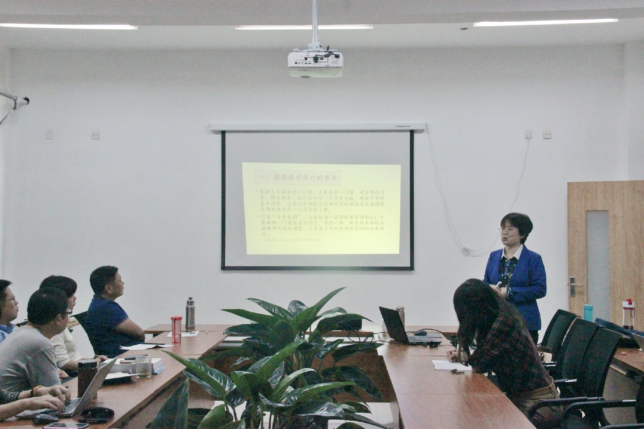 路教授的讲座从两个方面展开,一是教师如何提高教学设计水平,她从备教材、备学生、备教法、如何制作多媒体课件等四个方面进行阐述,强调课程设计目的要明确、主体突出、内容富有逻辑性;她指出,在教学设计中既要注重挖掘“是什么”,更要重视分析“怎么样”“为什么”;在“备学生”的过程中,要深入了解学生的前期知识技能、原有生活经验,学生的认知方式与习惯等。二是教师如何增强课堂教学活力,即通过上好第一堂课、创设和谐融洽的课堂氛围、合理运用多媒体、让学生参与教学的过程等方法使课堂教学富有活力。在讲座过程中,路教授结合大量实例,对课堂教学中出现的各类问题进行了点评和指导。与会教师认真聆听报告,并与路教授就混合式教学改革等问题进行了充分交流。