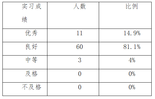 毕业生的毕业实习成绩根据学生的出勤表(10%)、实习记录表(30%)、实习总结(50%)、实习评估(10%)4个部分按照比例得出。