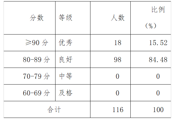 实习工作取得了良好的实习效果。实习结束后,共收到116份实习鉴定表,实习单位指导老师对每一个实习生都作出了客观的评价,实习鉴定成绩全部合格。学生及时撰写实习报告,总结实习中的经验教训,指导教师根据学生在实习过程中的表现、纪律、能力和对实习知识的掌握程度进行评价。结合实习单位的意见,按照一定比例标准对每一位学生给出综合实习成绩。