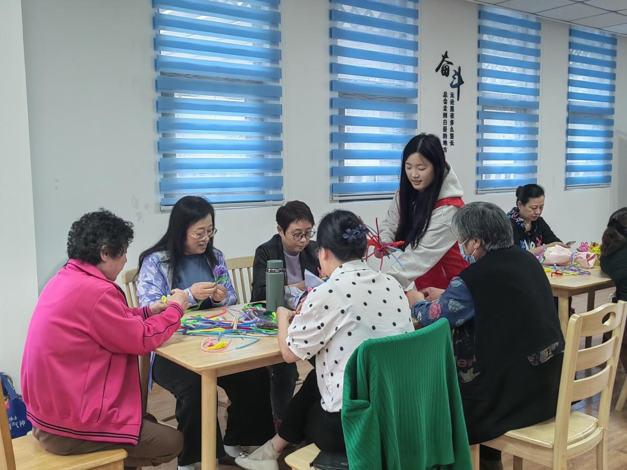 “哇,这花儿就和真的一样,真是好看,我要拿回家送给我的小外孙女,她肯定喜欢!”张阿姨一边说着一边开心的笑着。在“悦享桑榆·扭出新花样”手工花制作兴趣小组制作中大家互相交流,相互学习,现场一片欢声笑语,看着自己的作品,老人们的成就感和自豪感油然而生。大家纷纷表示,要多参加此类活动,在活动中不仅学习到了手工制作方法、技巧,还收获了与大家在一起的快乐。