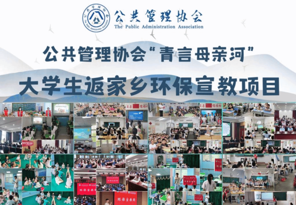 为进一步深入学习贯彻习近平生态文明思想,将理论学习融入社会实践,向广大民众宣传和普及环保理念与环保知识,引领广大青年学生参与到环保事业之中,公共管理协会成立“青言母亲河”环保宣教团,推出保护母亲河等志愿服务项目,为我国环保事业的发展交了一份份写在青山绿水间的青春答卷。