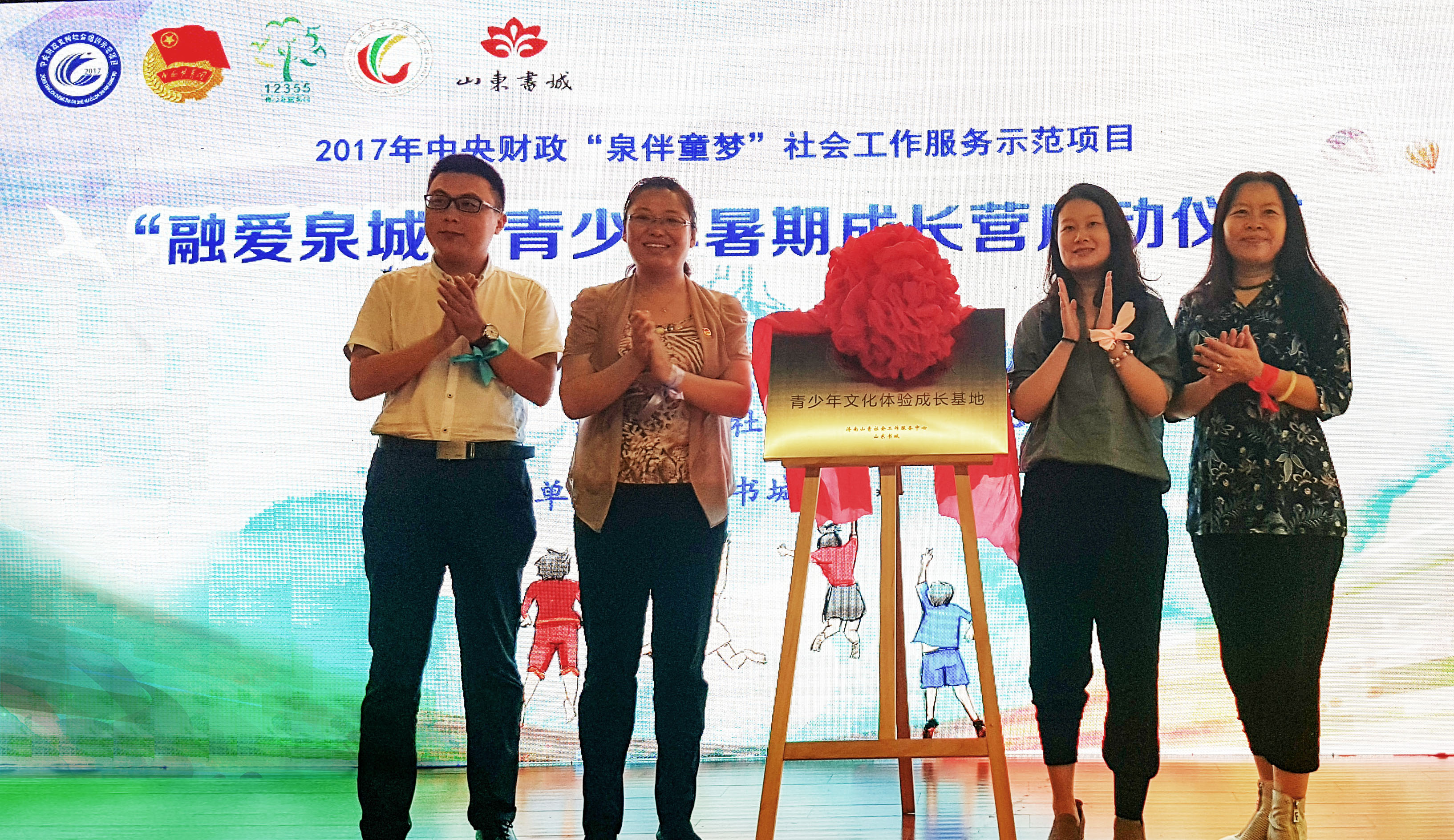 2017年7月25日上午,由山东省12355青少年服务台、济南山青社会工作服务中心联合主办的“融爱泉城”流动青少年暑期成长营暨2017年中央财政支持“泉彩童梦”流动青少年城市关系调试社会工作示范项目暑期服务启动仪式在山东书城举行。共青团山东省委权益部副部长张梓涵,共青团济南市委副书记徐冬梅,共青团山东青年政治学院委员会副书记范红伟,共青团山东出版集团委员会书记张祝彬,共青团市中区委副书记曹雪莲出席此次活动。山东青年政治学院政治与公共管理学院院长、济南山青社会工作服务中心理事长王玉香,济南山青社会工作服务中心总干事孙成键以及部分项目社工、高校志愿者以及社区青少年共同参加了此次活动。