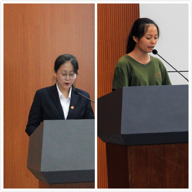 在领导班子寄语环节,贾东荣指出,大学生要学会努力完善自我,通过接受大学教育赢得属于自己的“地位商品”和“自我提升的商品”;要读好“社会”这本书;要学会合理利用网络进行学习。他还寄语新生秉承中华优秀传统文化的“中庸”思想,学会理性思考问题,努力使自我增值。丁萍则重点谈论了从“纪律”到“自律”的重要性,她指出,“纪律”与“自律”虽只有一字之差,但意义和境界却大不相同,把被动的“纪律”内化为主动的“自律”,那么人生将会大有不同。丁萍寄语新生们努力做好自我管理,尽快适应大学生活,并提出了“做校纪校规的执行者”、“做自尊自立的青年人”、“做良好学风的带动者”、“做校园文明的践行者”和“做校园安全的守护者”五点倡议,动员新生共同打造政管新风。