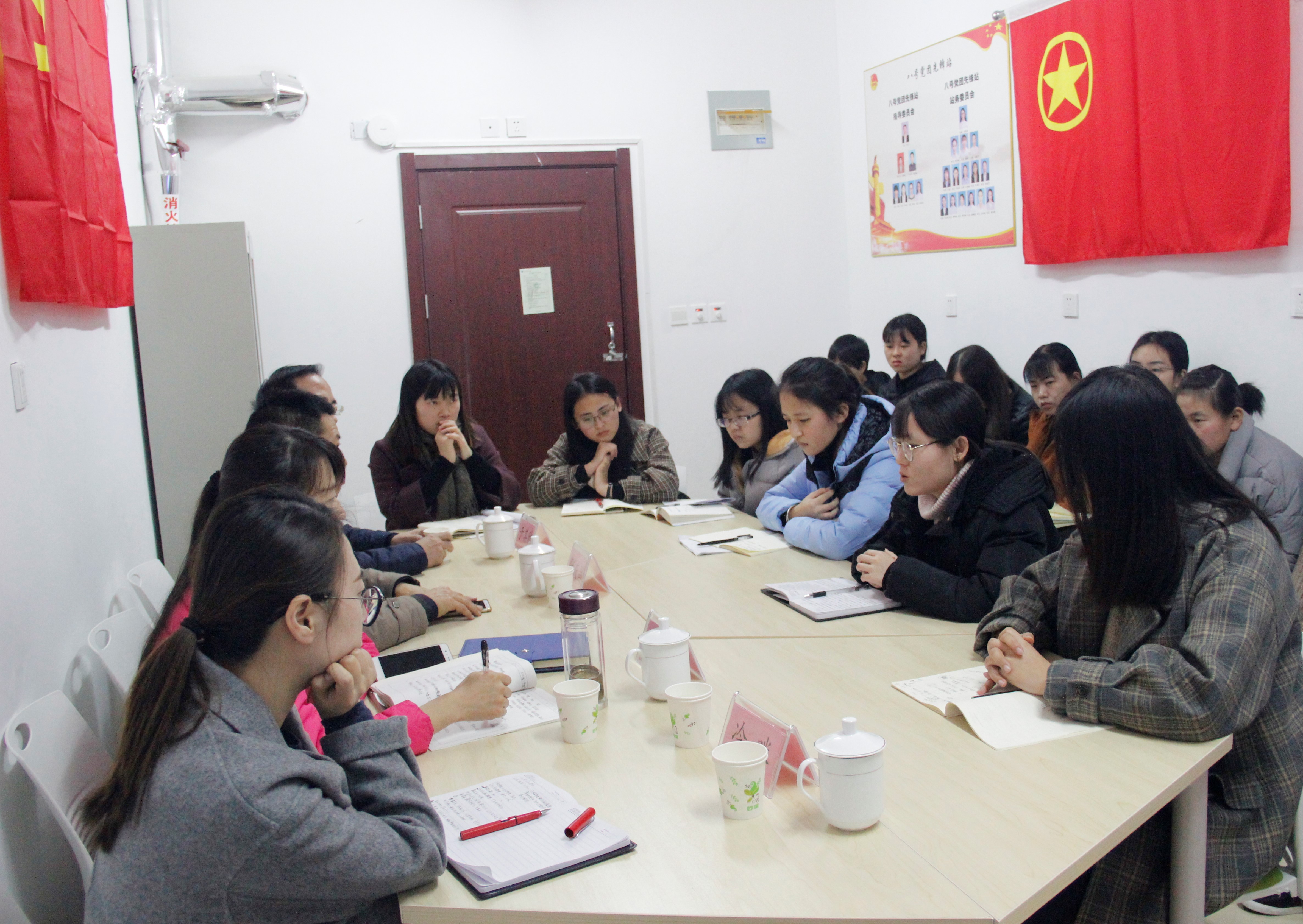 为持续深入学习贯彻落实党的十九大精神,积极推进学校“党建团建进社区”活动,切实加强学院基层党团组织建设,充分发挥优秀党员团员的模范带头作用。12月7日下午,8号党团先锋站组织开展了“弘扬红船精神,坚定理想信念”学习交流会。舞蹈学院党总支书记张庆昌、政管学院党总支书记于其欣、8号党团先锋站指导委员会主任丁萍应邀出席,成员冷咪、于瑶和8号党团先锋站站务委员会全体成员参加。活动由于瑶主持。
