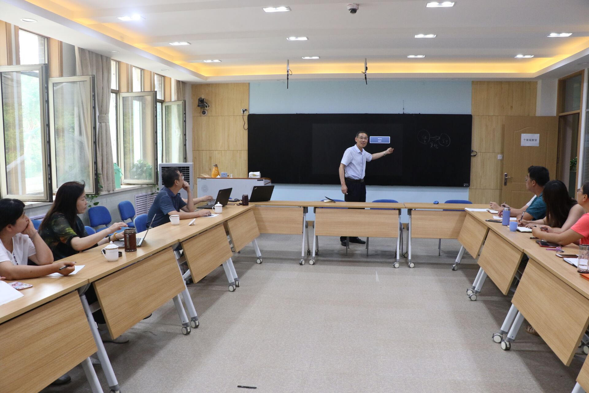 7月26日,学校党委书记鹿林到政治与公共管理学院参加应用型人才培养研讨论证会,指导调研应用型人才培养体系建设工作。他就学院教学大纲的修订,如何建立学校、学院、专业联动机制的应用型人才培养体系与政管学院教师进行了深入交流。政治与公共管理学院院长王玉香、党总支书记于其欣、副院长张剑以及全体教职工参加会议。