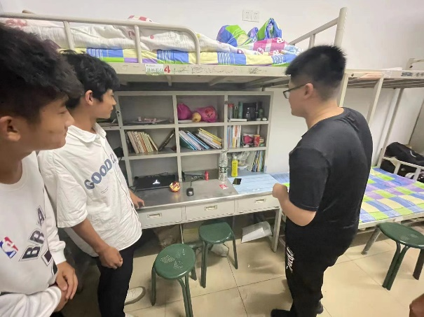 学生党员围绕用电安全、消防安全、财产安全、预防诈骗、宿舍卫生等主题与宿舍成员进行深入交流,对学生公寓内使用高功率违规电器、高负荷插线板等安全隐患进行了细致排查,对物品摆放、垃圾清理、用电安全等问题进行逐一解答,并向新生介绍了在校学习生活的经验,在提高新生安全卫生意识的同时,也增强了新生对学院的情感归属和思想认同,充分发挥朋辈榜样的示范引领作用。