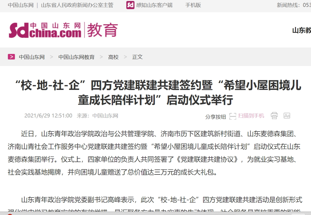 山东青年政治学院:四方党建联建共建签约暨“希望小屋困境儿童成长陪伴计划”启动仪式举行 |