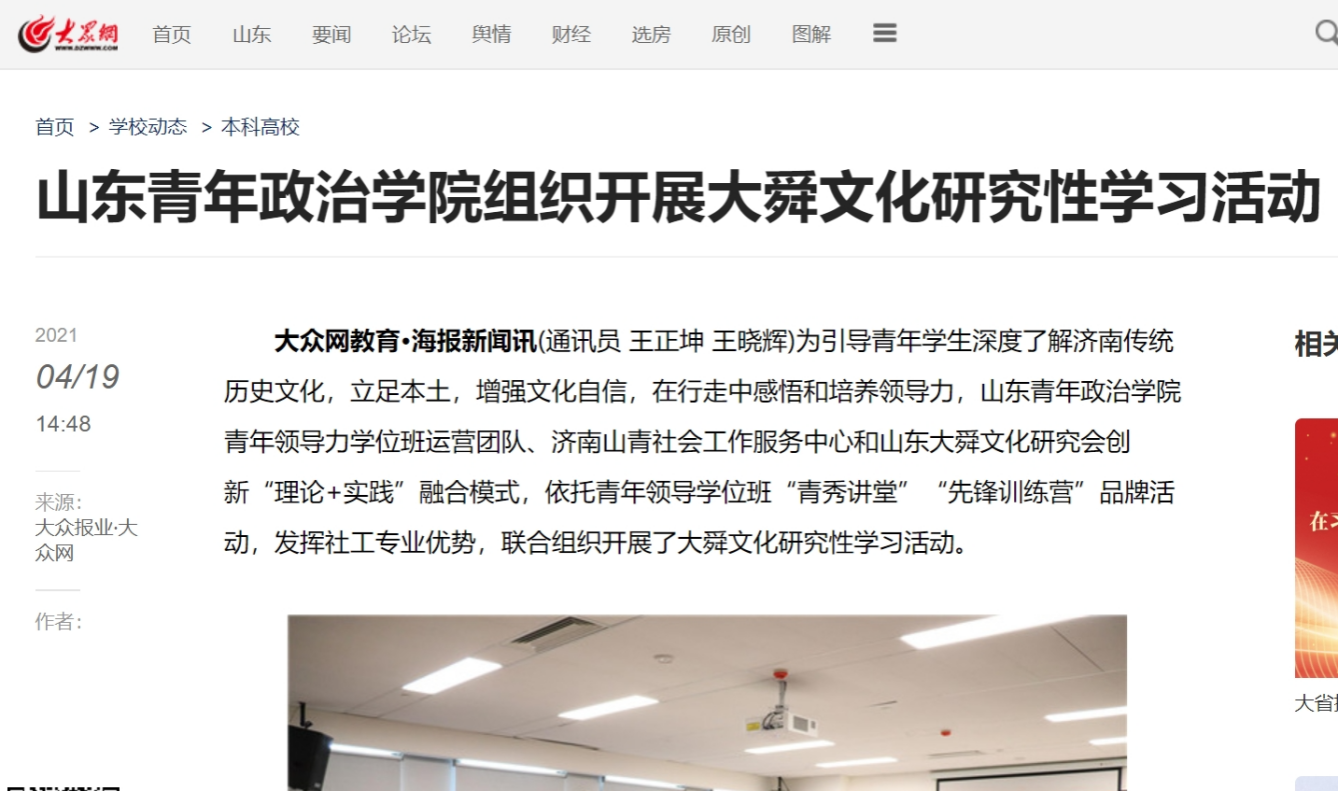 山东青年政治学院组织开展大舜文化研究性学习活动 |
